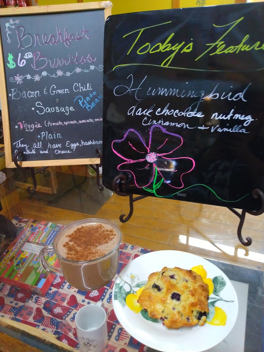 “ Great find just a few miles outside of Cortez - a coffee shop that is open past 2 and has cozy indoor seating! Veronica was very friendly and helpful. Lots of espresso and Italian soda options, tea, pastries, and good breakfast burritos. They also host events such as the painting class tonight and music. Internet is not great (at the moment), but I am having no problems with my Verizon hot spot. I'm not from the area, but will definitely swing by on my next time through! ”